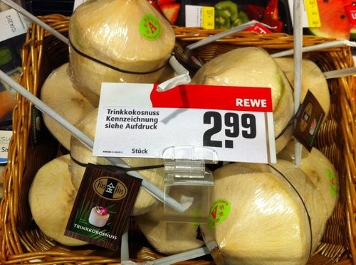 *UPDATE*: Minha amiga já viu coco para vender no Rewe por 2,99. Repara o lusho: já vem até com canudinho. Agora me fala Bruna: vem com machadinho para abrir ou como faz?