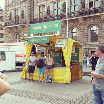 oi fico feliz emter te encontrado ,sou de Pernambuco e moro aqui a 12 anos , em Jöstadt aqui noa é tao agitado como em Hamburg ou mesmo como Pernambuco ,mas como dis minha mae ...agente se acostuma contudo ,rsrsrs.bom depois de 12 anos ja provei de quase tudo que tem aqui tentando sem futuro encontrar al que chegue o mais perto do gostinho bresileiro ,em vao ,pois esse jeitinho e gostinho no tem mesmo na nossa terra abencoada por Deus,bom eu encontrei agua de coco no NORDSEE," pra quem nao conhece é uma loja de frutos do mar" e para o meu espanto é bem gostosa e se tiver bem gelada melhor ainda ,ela vem em caixinha e custa quase 6 euros,ok na NORDSEE é tudo muito caro,mais vale apena. abrcos e desculpem ,meu teclado é Alemao.beijocas a todos
